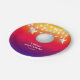 Elégante plaque de papier d'anniversaire avec étoile argentée pendante, boule de Noël et ampoule à cordes sur un arrière - plan multicolore dégradé de peinture.