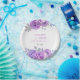 Élégante et simple assiette en papier pour fête de mariage avec fleur de rose violette et texte en calligraphie vibrante.