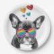 Assiettes En Carton Chien de taureau avec Coeurs Saint-Valentin