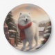 Assiettes En Carton Chien Samoyé à Noël de neige