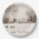 Cette photo pittoresque de paysage de neige sur ces plaques de papier d'origine a un tableau de deux chiens qui les ornaient, l'un des chiens s'appelait Tod, c'était un chien brun berger allemand de race mixte/labrador et l'autre chien était Eddie un chien de race mixte noir et tan berger allemand/collie chien. Les deux meilleurs amis ont été peints à partir d'une photo prise alors qu'ils avaient une bonne sniff dans le paysage boisé couvert de neige. L'image originale est une aquarelle représentant une belle zone boisée ouverte à Londres appelée Pole hill, elle a toujours l'air festive quand elle est sous une couverture de neige, et dans l'arrière - plan, à travers les arbres couverts de neige, vous pouvez voir les toits de neige des maisons sous une couverture de neige. Tod et Eddie étaient les meilleurs amis et ils ont tout fait ensemble, Tod était sévèrement épileptique et quand Tod avait une saisie sur Eddie me retrouvait et m'emmenait à, je pouvais alors m'assurer que j'étais près de Tods pendant la crise. Malheureusement Tod et Eddie ne sont plus avec nous, mais ce petit tableau hivernal sur la neige au pays des merveilles dépeint les moments heureux. Ce sont des plaques de Noël personnalisables, vous pouvez les personnaliser avec votre propre texte. La peinture originale de cette scène de neige est en couleur d'eau. Cette image a été numériquement améliorée pour lui donner un effet sépia.