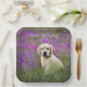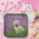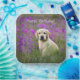 Ces plaques de papier d'anniversaire sont ornées d'un adorable chien de chien de laboratoire jaune dans un champ de fleurs sauvages. Le texte peut être modifié ou éliminé pour répondre à vos besoins.