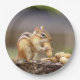 Un chipmunk mangeant une cacahuète en se tenant sur sa pile d'arachides. C'est l'un des chipmunks qui vit dans un terrain de camping à Ticondépende, NY. Cette image a été prise par Debbie Quick of Debs Creative Images. Pour voir d'autres photos de Debbie, visitez son site web à :www.debscreativeimages.com
