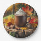 Assiettes En Carton Chocolat Chaud D'Automne Sur La Pompe D'Arbre