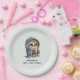 Assiettes En Carton Chouette à gros yeux mignonne tenant un café Anniv