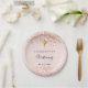 Un arrière - plan rose vif. Décoré de confettis d'or rose et d'une fausse croix d'or. Personnalisez et ajoutez un nom et une date.
