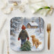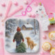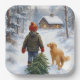 Assiettes En Carton Christmas Boy In Snowflakes With Pine Tree and Dog