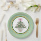 Christmas chinoiserie pink and green paper plates.
