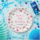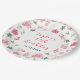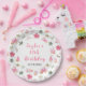 This elegant and festive plate features watercolor hot cocoa, gingerbread cookie jar, pink poinsettia flowers, holly berries and foliage. The text combines handwritten script and sans serif fonts for a stylish and modern look. This is perfect for Christmas birthday parties.