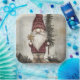 These festive paper plates feature a whimsical Christmas gnome in a dark red knit hat, holding a golden star and standing in a snowy forest. With its warm palette and gentle charm, it’s a delightful pick for anyone who appreciates classic holiday style with a touch of personality.