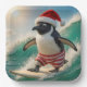 Assiettes En Carton Christmas Penguin Surfing On an Ocean Wave