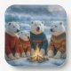 Assiettes En Carton Christmas Polar Bears Around a Bonfire