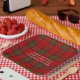 Assiettes En Carton Christmas Red Green Plaid Show up with Wine
