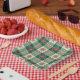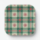 Assiettes En Carton Christmas Red Snowflakes Green Checks Pattern