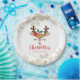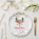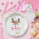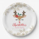 Noël Reindeer fille d'anniversaire assiettes de fête avec le visage de rennes mignons et parties scintillant d'or flocons de neige.