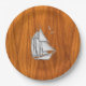 Assiettes En Carton Chromes Silver like Sailboat on Teak Veneer