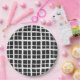 Servez le style éffrayant-doux avec cette plaque en papier plaid noir et blanc, conçue pour se coordonner en toute transparence avec la collection de baby showers Batty for Baby. Dotée d'un motif moderne en plaid, cette assiette ajoute une touche chic à votre table de baby shower Halloween. Associez-le avec des tasses, des serviettes et des sacs de faveur de la suite pour une fête polie et thématique. Durable, jetable et entièrement personnalisable.