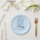 Un peu de paradis est en route ! Ces plaques en papier pastel bleu aquarelle présentent une typographie de script moderne ornée d'étoiles, de nuages et d'une lune céleste. Personnalisez le texte avec le nom et la date de la maman bébé pour votre baby shower garçon.