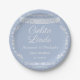 Celebrate your little one with this elegant Cielito Lindo baby shower paper plate featuring delicate white papel picado banners and ornamental floral accents on a soft dusty blue background. Inspired by traditional Mexican décor, this design blends cultural charm with a modern, minimal look.