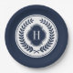 Assiettes En Carton Cimetière monogramme bleu et blanc