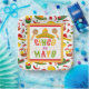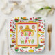 Une Plaque De Papier Carré Colorée Pour Célébrer Le Cinco De Mayo, Dessiné En Casquette Mexicain Et De La Nourriture