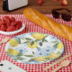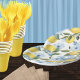 Assiettes En Carton Citron et Fleur Aquarelle Blanche