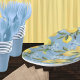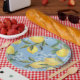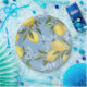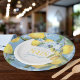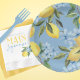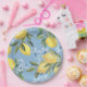 Assiettes En Carton Citron et Fleur Aquarelle Bleue