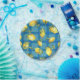 Plaques à papier avec les citrons jaunes zesty sautant sur un arrière - plan bleu vibrant de plaid, pour une table délicieuse d'été.