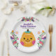 Cette assiette de baby shower colorée et mignonne présente le thème de la Journée des Morts ou Dia de los Muertos, idéal pour une fête d'Halloween ou d'automne. Un petit citrouille est représenté au centre avec son visage peint à l'image d'un crâne à sucre. Des éléments de style cachemire fleuris colorés accentuent les bordures.