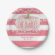 Citrouille fall chic plaques de papier baby shower avec un arrière - plan rayé chic rose & blanc, lampes à corde, un citrouille d'automne et une formulation moderne.