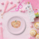 Citrouille Automne Premier Anniversaire Plaques Papiers De Fête. Arrière - plan rose.
