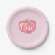 Citrouille Automne Premier Anniversaire Plaques Papiers De Fête. Arrière - plan rose.