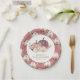 Élégantes plaques en papier baby shower avec de belles fleurs et une typographie moderne.