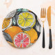 Ajoutez un peu de couleur à votre prochain rassemblement avec ces plaques colorées en papier d'agrumes. Ces assiettes sont décorées d'une encre vibrante et fantaisiste représentant des citrons, des oranges et des pamplemousses, chacune coupée en tranches pour révéler leur intérieur vibrant. Le pamplemousse rose, le citron jaune et l'orange sont peints de couleurs vives et accrocheuses qui s'opposent à l'arrière - plan noir. Ces assiettes ne sont pas seulement visuellement attrayantes, mais aussi pratiques. Ils sont assez robustes pour tenir vos aliments de fête préférés, mais jetables pour un nettoyage facile. Parfait pour pique-nique, barbecue, fêtes, réunions décontractées ou utilisation quotidienne. Disponible en différentes tailles et styles, y compris les bols et assiettes carrés pour répondre à vos besoins et à vos préférences. Les assiettes fantaisistes sont plus que de la vaisselle, c’est un début de conversation. Ils apportent la fraîcheur des agrumes directement à votre table, ce qui fait que chaque repas ressemble à une fête. Commandez ces mignonnes plaques en papier d'agrumes dès aujourd'hui et laissez votre vaisselle être la discussion de la fête!