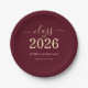 Stylish elegant custom graduation party supply! Celebrate the graduate's accomplishment in style with this trendy graduation paper plate. Design features "Class of 2026" in elegant gold script typography on a clean burgundy background. Personalize this product by adding the name and school name. Easy to customize. Matching graduation party supplies available. Congratulations!