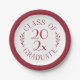 Jetez une élégante fête de graduation avec des assiettes en papier classique avec un chic bordeaux sur l'emblème de typographie blanche qui dit : CLASSE DE [ANNÉE] DIPLÔMÉE avec les mots courbant autour de l'année au milieu avec des feuilles botaniques courbés de chaque côté du design circulaire à l'intérieur d'une bordure de cercle de marron. Customisez l'année dans la barre latérale. Pour voir la conception sur d'autres éléments, cliquez sur le lien de collection "Rocklawn Arts". Copyright ©Claire E. Skinner. Tous droits réservés.