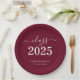 Fourniture élégante et élégante de fête de graduation personnalisée! Célébrez la réussite du diplômé en style avec ces plaques de papier tendance de la fête de remise des diplômes. Design propose "Class of 2025" en police blanche et élégante sur un arrière - plan bordeaux. Personnalisez ce produit en ajoutant le nom et le nom de l'école. Facile à customiser. Fournitures de fête de remise de diplômes correspondant disponibles. Félicitation !