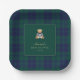 Classic Green Navy Plaid Bear Baby Shower Paper Plates