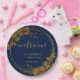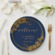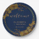 Assiettes En Carton Classy Gold Floral Navy Blue Welcome
