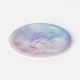 Plaque de baby shower rêvée et élégante avec aquarelle de ciel rose et violet avec nuages et étoiles. Le texte dit "nous sommes sur le nuage 9."