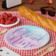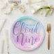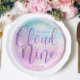 Nuage neuf plaques de papier baby shower. Nous sommes sur le modèle de nuage neuf plaque pour vous de personnaliser pour l'événement parfait. Plaque violette rose pour le baby shower nuageux et le ciel. Avec nuages, ciel et étoiles. Décor moderne et élégant de table d'aquarelle numériquement design. Découvrez des articles de fête sur le thème du nuage similaires en visitant la collection de baby showers Cloud Nine.