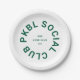 PKBL Social Club, crête verte, plaques de papier rond à pickleball. Personnalisez avec l'année, le club de pickleball et la ville. Idéal pour une fête de pickleball, une fête de club de pickleball local ou pour un baccalauréat, une bachelorette ou une fête d'anniversaire. Conçu pour correspondre à notre collection PKBL Social Club Pickleball Collection.