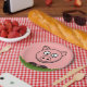 Cochon rond de dessin sur les assiettes de la fête des enfants.