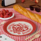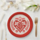 Assiettes En Carton Coeur d'art populaire rouge et blanc