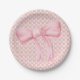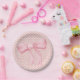 Ces élégantes assiettes en papier sont la touche finale parfaite pour tout baby shower ou événement de preppy classique. L'arc rose pâle est accentué d'un arrière - plan blanc et d'un monogramme de votre choix. Arrière - plan de coeur.