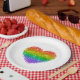 Assiettes En Carton coeur de parties scintillant arc-en-ciel