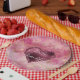 Assiettes En Carton Coeur de Parties scintillant cerise de Bourgogne