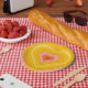 Conception de l'éclatement cardiaque rétro. Couches de coeur en orange, jaune, rose. Cadeaux de coeur rétro super, décoration maison.