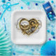 Coeur steampunk mécanique, volumétrique, avec manomètre, acier et or sur arrière - plan blanc. Style Steampunk.