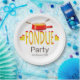 Plaques en papier conçues pour une fête fondue célébrée à tout moment. Vous pouvez changer le mot "Party" et la date/nom de la partie pour convenir à votre occasion .Design typographique avec des polices étroites dessinées à la main, des coeurs et un pot de fondue graphique.